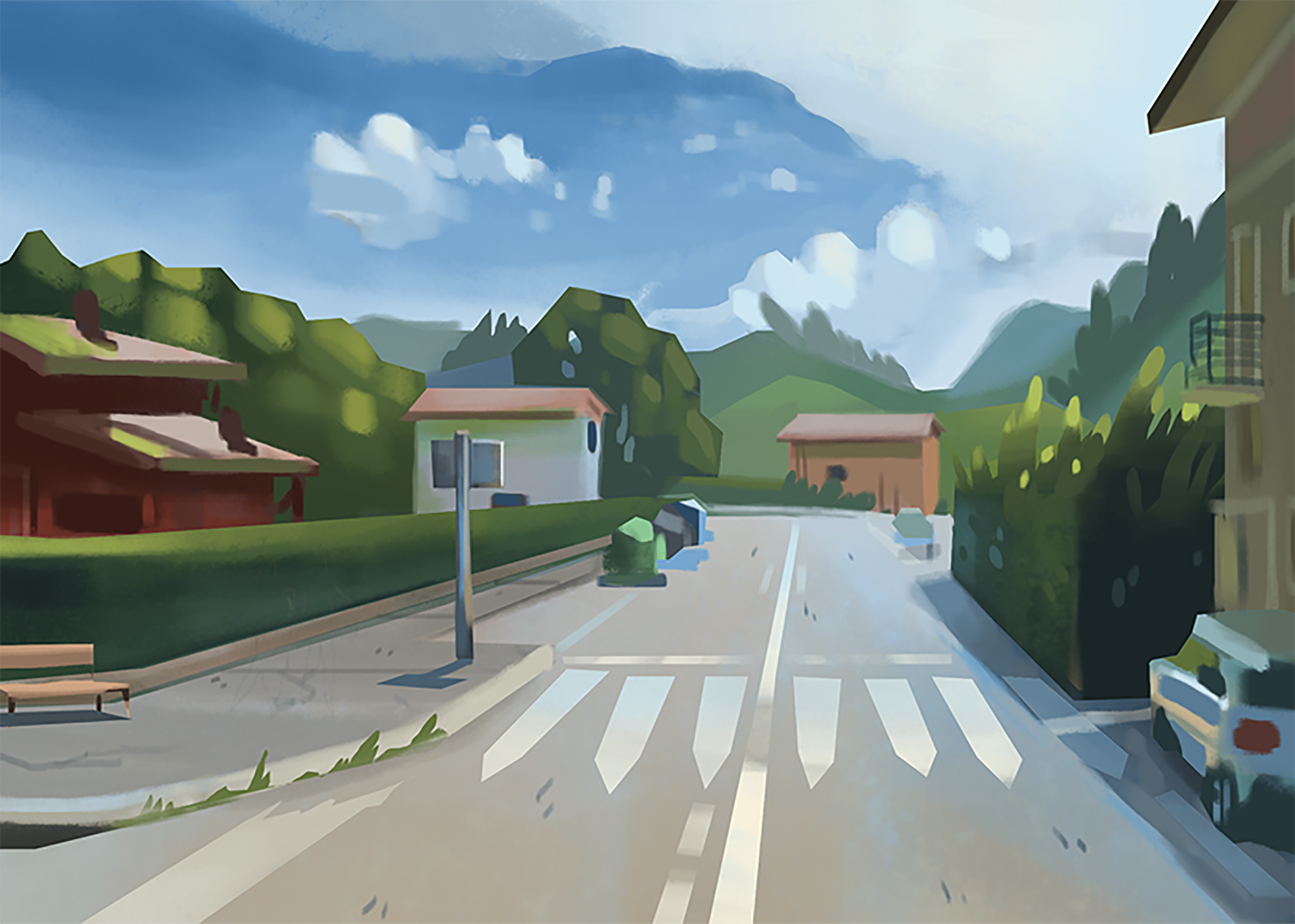For practice in my spare time, I like to do little paintings called digital plein airs. I open up a site like google earth, wander around, and choose a spot to do a painting of in one short sitting.